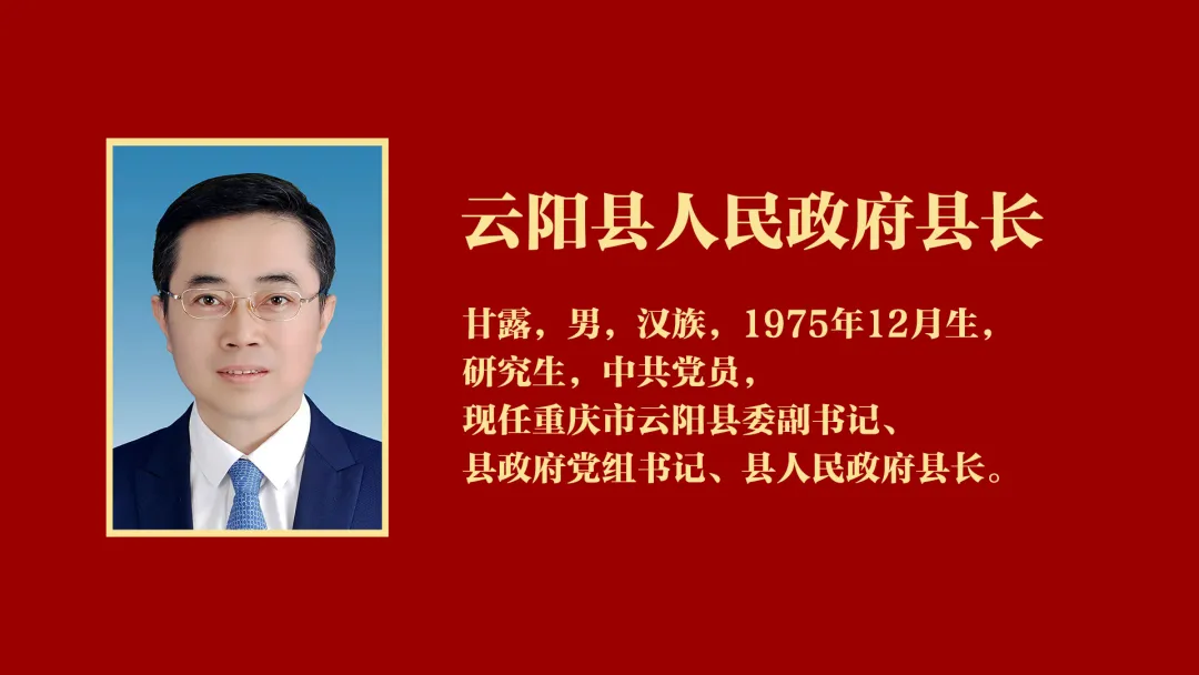 云阳县第十八届人民代表大会第七次会议,于2025年10月16日选举甘露为云阳县人民政府县长。