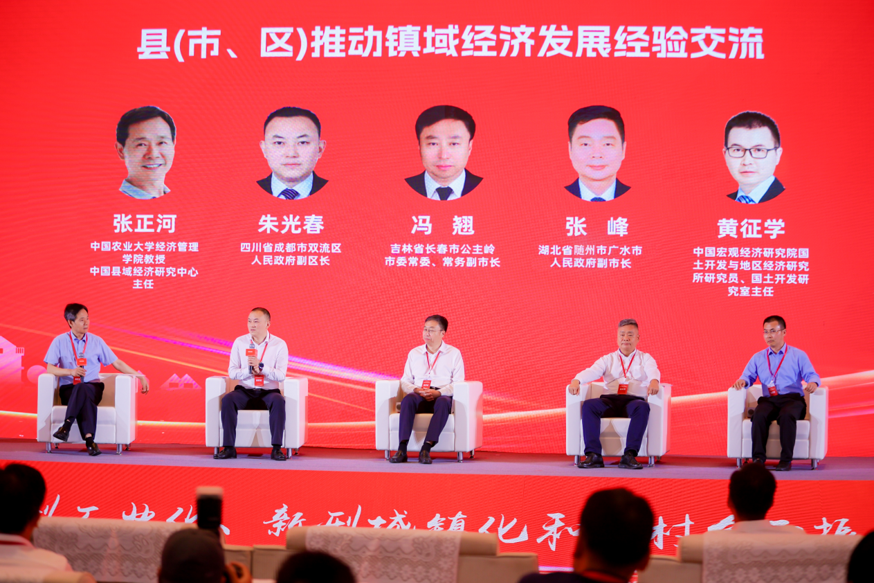 圆桌对话环节,由中国农业大学经济管理学院教授、中国县域经济研究中心主任张正河主持,围绕赋能保障、产业发展等议题,与四川省成都市双流区、吉林省长春市公主岭市、湖北省随州市广水市领导嘉宾进行深入交流,中国宏观经济研究院国土开发与地区经济研究所研究员、国土开发研究室主任黄征学作总结发言。