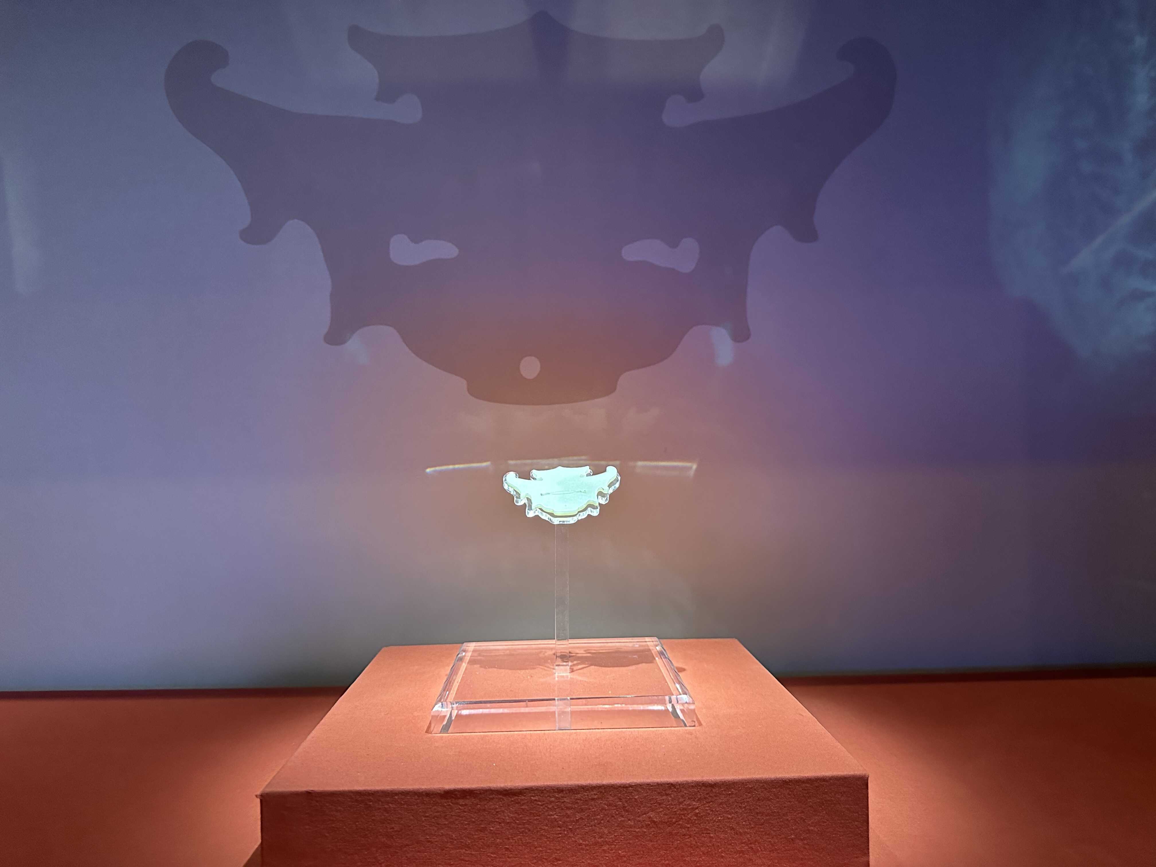 玉兽面器身的头部展示出介字形头冠,下方有展现透雕技术的三个小孔,形象与上古时期战神蚩尤的形象非常相似,或为一件祭祀通神的礼器。