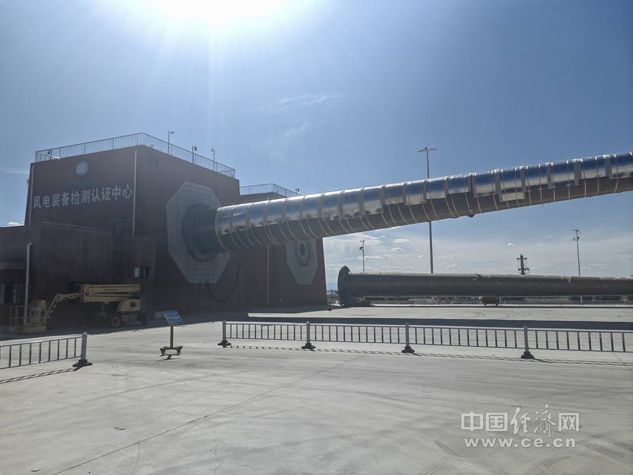风机叶片正在进行静力极限测试。中国经济网 年巍/摄
