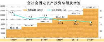 全年全社会固定资产投资12840.13亿元,比上年增长28.1%。其中,固定资产投资12501.43亿元,增长28.9%;农户投资338.7亿元,增长5.2%。