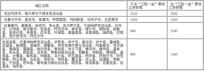 二、全日制就业劳动者月最低工资标准分为两种形式。一是含劳动者个人缴纳的养老、失业、医疗保险费和住房公积金(以下简称“三险一金”)的月最低工资标准,分为1520元、1320元、1240元、1160元4个档次。二是不含“三险一金”的月最低工资标准,分为1210元、1020元、940元、865元4个档次(见附表1)。